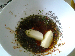 3. Ajoutez l'huile, les herbes, les épices, le sel et le poivre.